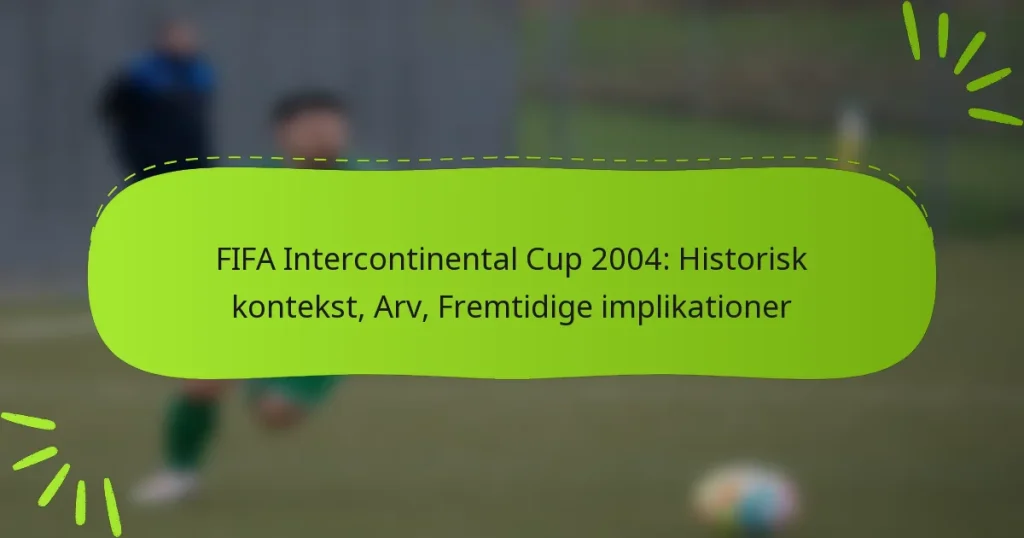 FIFA Intercontinental Cup 2004 markerede et betydningsfuldt øjeblik i fodboldhistorien, hvor mestrene fra Europa og Sydamerika blev præsenteret. Dette turnering fremhævede ikke kun den konkurrenceprægede ånd mellem disse regioner, men afspejlede også det udviklende landskab inden for global fodbold i denne periode. Dens arv fortsætter med at påvirke internationale klubturneringer og forme sportens fremtid. Key sections in the article: Toggle Hvad er den historiske kontekst for FIFA Intercontinental Cup 2004? Oversigt over FIFA Intercontinental Cup Deltagende hold og deres baggrunde…