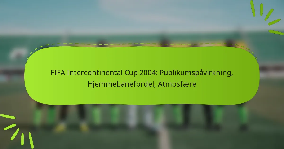 Publikums indflydelse under FIFA Intercontinental Cup 2004 havde en betydelig indvirkning på spillerpræstationer og den overordnede kampatmosfære. Tilstedeværelsen af passionerede fans skabte et unikt miljø, der kunne ændre kampens momentum og viste kraften i hjemmebanefordelen og publikumsdynamik.